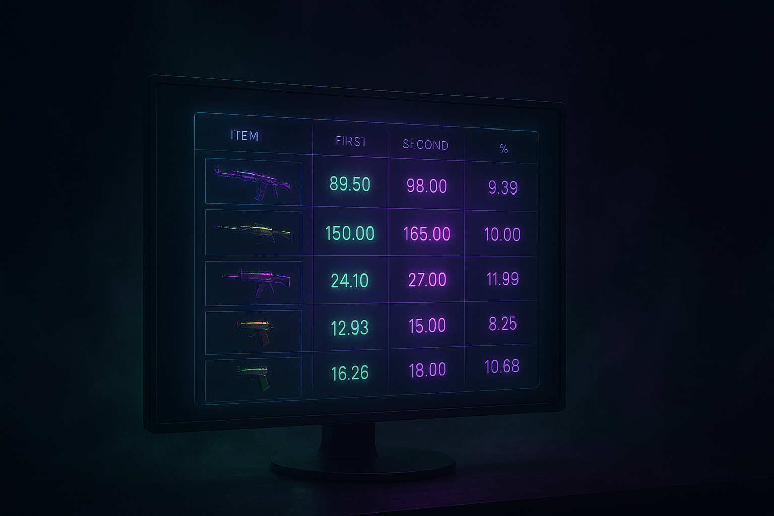 <table data-header-hidden><thead><tr><th width="141"></th><th width="453"></th><th></th></tr></thead><tbody><tr><td><div><figure><img src="https://3935622216-files.gitbook.io/~/files/v0/b/gitbook-x-prod.appspot.com/o/spaces%2FPc0YXzJ8LbTFk6z5tVBi%2Fuploads%2FOGXNpzkwLDWd9a6ZueQ8%2Fimage.png?alt=media&#x26;token=ec9b7ae6-6493-47c3-b4b5-99cb81efe2ec" alt=""><figcaption></figcaption></figure></div></td><td><h4>TradeBack</h4><p>Олд на рынке таблиц, сам использую именно её и по работе с ней отдельно написал в <a href="../vyvod-dropa/15-vyvod-cherez-tablichku"><strong>выводе через табличку</strong></a>.</p></td><td><a href="https://tradeback.io/r/farmcs2"><strong>Перейти на сайт</strong></a></td></tr><tr><td><div><figure><img src="https://3935622216-files.gitbook.io/~/files/v0/b/gitbook-x-prod.appspot.com/o/spaces%2FPc0YXzJ8LbTFk6z5tVBi%2Fuploads%2FnP8F2mY0xpifUkxKSwrY%2Fimage.png?alt=media&#x26;token=82444904-63be-4edb-aa67-0ed414834af5" alt=""><figcaption></figcaption></figure></div></td><td><h4>vvTable</h4><p>Относительно старая табличка.<br>Бывало приобретал подписку для <strong>BUFF163</strong>.</p><h4><br></h4></td><td><a href="https://tablevv.com/"><strong>Перейти на сайт</strong></a></td></tr><tr><td><div><figure><img src="https://3935622216-files.gitbook.io/~/files/v0/b/gitbook-x-prod.appspot.com/o/spaces%2FPc0YXzJ8LbTFk6z5tVBi%2Fuploads%2F1Yh0ovryowca3wKy56OQ%2Fimage.png?alt=media&#x26;token=b778a557-a165-4712-ab0e-9765ba0adbca" alt=""><figcaption></figcaption></figure></div></td><td><h4>Pulse</h4><p>Новая, таблица для трейда.<br>Лично я <strong>ни разу</strong> не пользовался данной табличкой.</p></td><td><a href="https://pulse.tradeon.space/"><strong>Перейти на сайт</strong></a></td></tr></tbody></table>